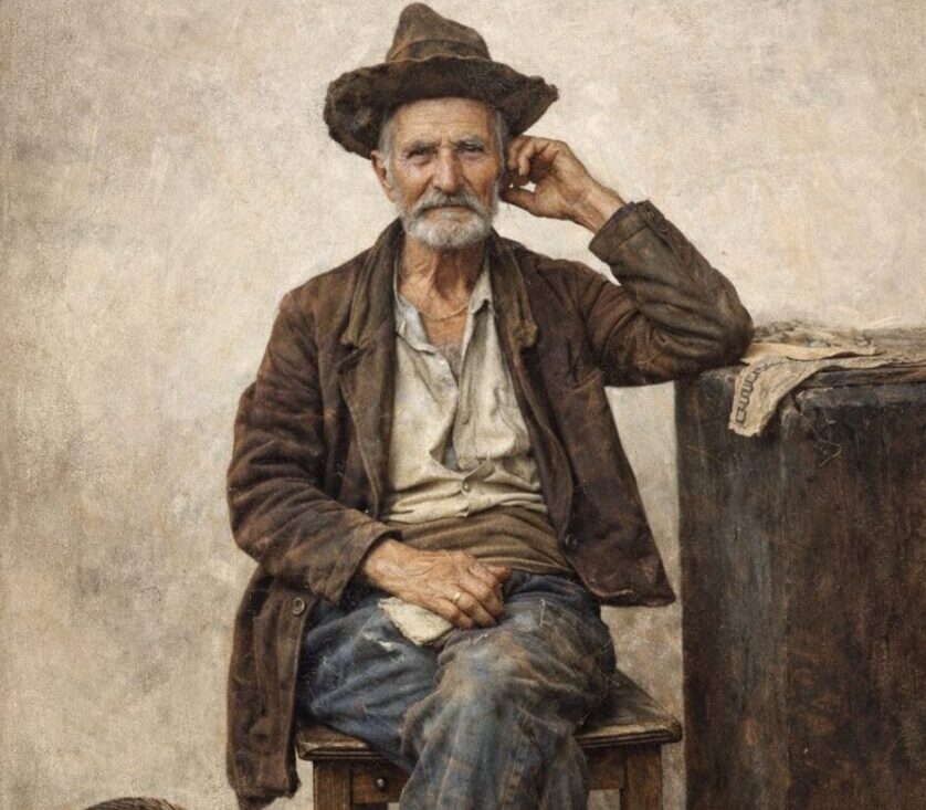 Στο χέρι του κρατούσε ένα καλάθι και τον συνόδευε πάντα ο πιστός του σκύλος, ο Λεονταρής, που μοιραζόταν μαζί του τα ξεροκόμματα, που του πρόσφεραν. Συνήθως φορούσε στο κεφάλι του περισσότερα από πέντε καπέλα…