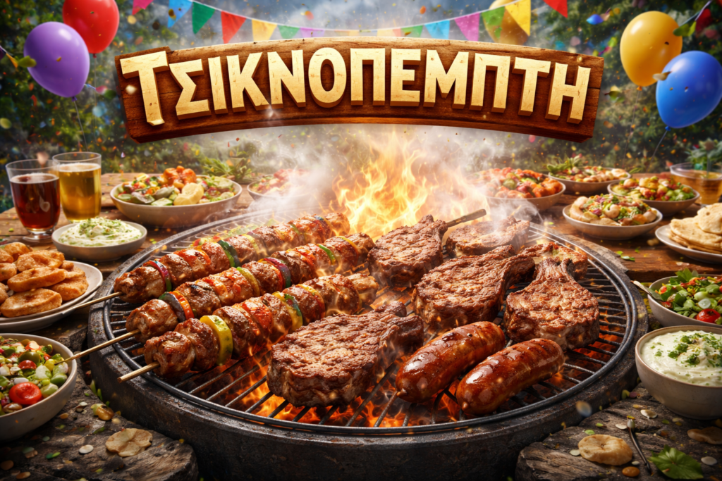 Πέμπτη της Κρεατινής, λίγο πριν αρχίσουν οι μεγάλες εγκράτειες, η Ελλάδα βγαίνει στα μπαλκόνια, στις αυλές, στα πεζοδρόμια και στις ταράτσες. Η τσίκνα απλώνεται σαν αόρατο σύννεφο συμφιλίωσης. Γείτονες που δεν μιλάνε όλο τον χρόνο, ανταλλάσσουν λουκάνικα. Άνθρωποι που «τρώνε ελαφρά», τρώνε… βαριά. Και όλοι, μα όλοι, έχουν μια δικαιολογία: έθιμο.
